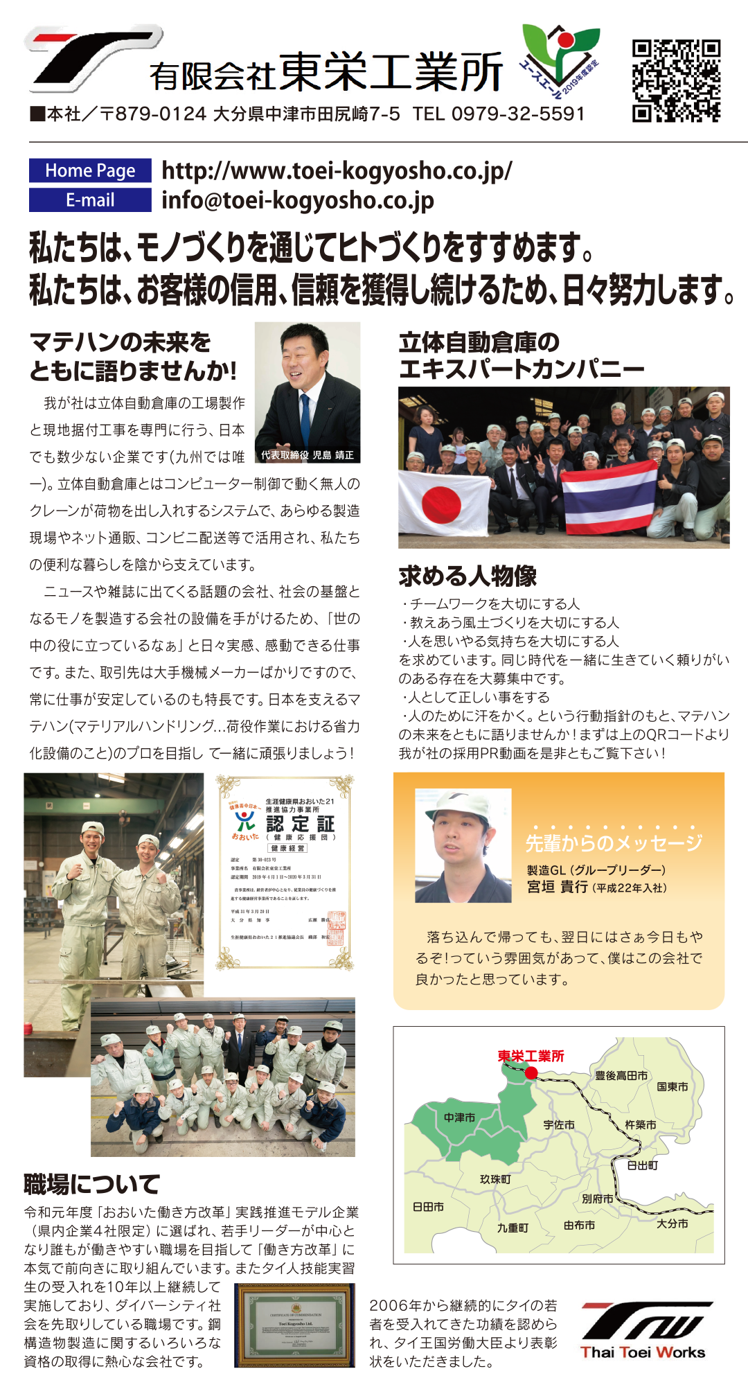 ※面接前に詳細な企業情報及び会社見学・工場見学等を希望される方は、まず求人ナビおおいたにご連絡ください。直接求人企業に電話しても構いません。