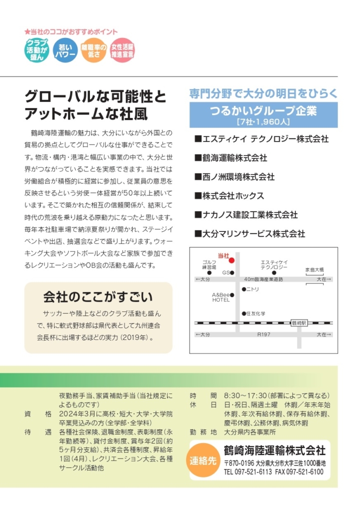 鶴崎海陸運輸株式会社 2023 3/01 求人情報2024年新卒採用正社員(新卒採用) お問い合わせはこちら ※面接前に詳細な企業情報及び会社見学・工場見学等を希望される方は、まず求人ナビおおいたにご連絡ください。直接求人企業に電話しても構いません。 求人情報 2024年新卒採用正社員(新卒採用) 有限会社東栄工業所 豊和銀行