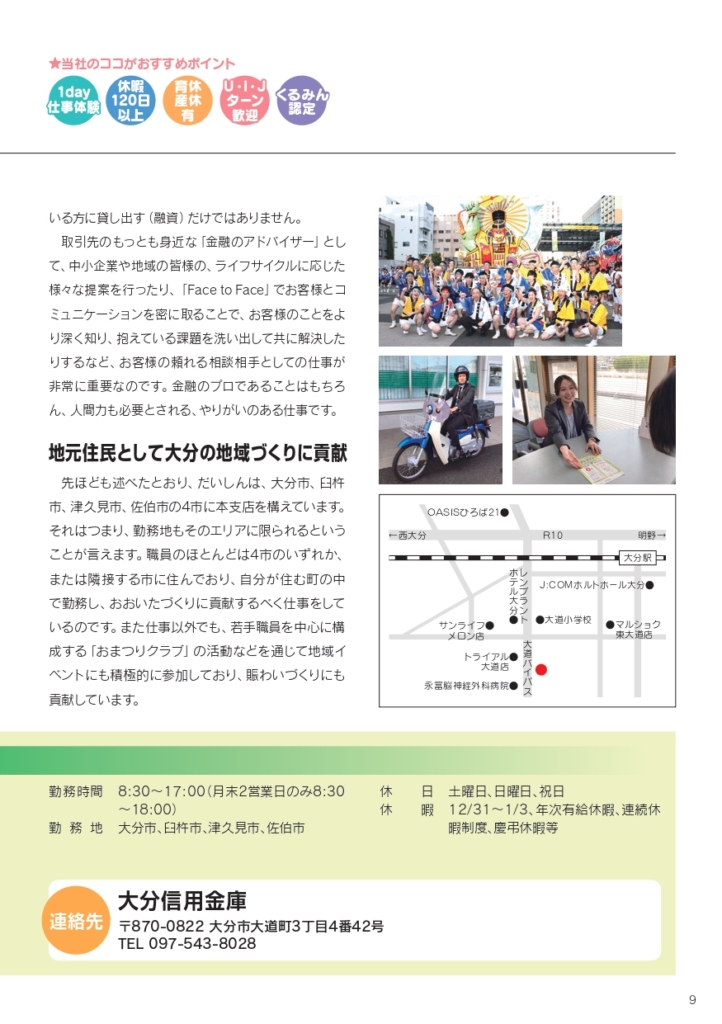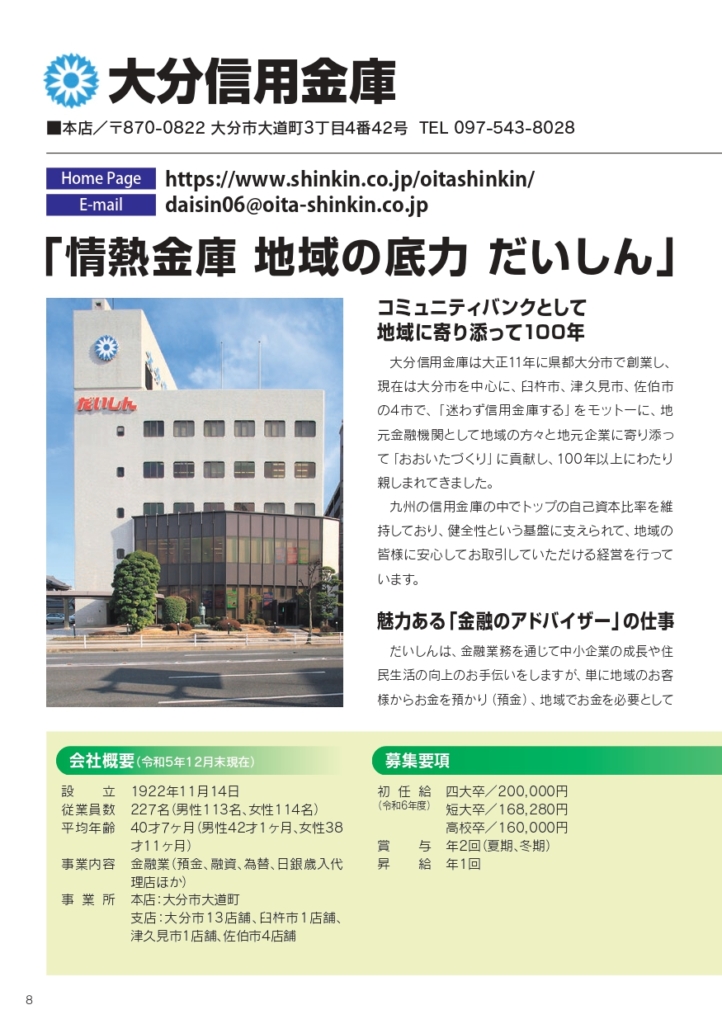 大分信用金庫 2024 3/28 求人情報2025年新卒採用正社員(新卒採用) お問い合わせはこちら ※面接前に詳細な企業情報及び会社見学・工場見学等を希望される方は、まず求人ナビおおいたにご連絡ください。直接求人企業に電話しても構いません。 求人情報 2025年新卒採用正社員(新卒採用) 朝日新聞サービスアンカー大分駅前 株式会社木戸硝子