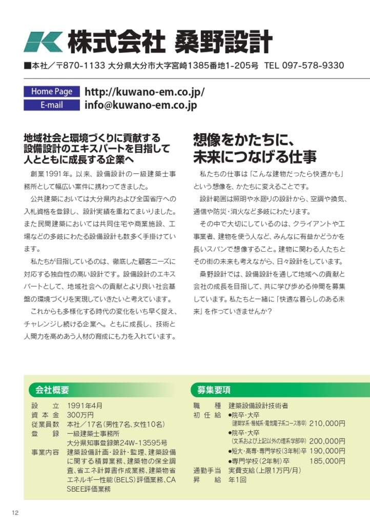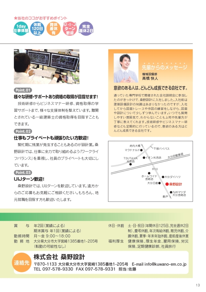 ※面接前に詳細な企業情報及び会社見学・工場見学等を希望される方は、まず求人ナビおおいたにご連絡ください。直接求人企業に電話しても構いません。