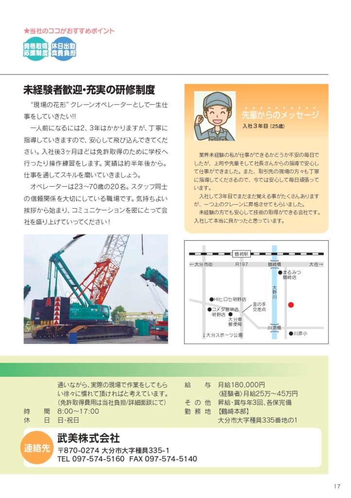 武美株式会社 2025 3/04 求人情報2026年新卒採用正社員(新卒採用) お問い合わせはこちら ※面接前に詳細な企業情報及び会社見学・工場見学等を希望される方は、まず求人ナビおおいたにご連絡ください。直接求人企業に電話しても構いません。 求人情報 2026年新卒採用正社員(新卒採用) 株式会社光建エンジニアリング 鶴崎海陸運輸株式会社