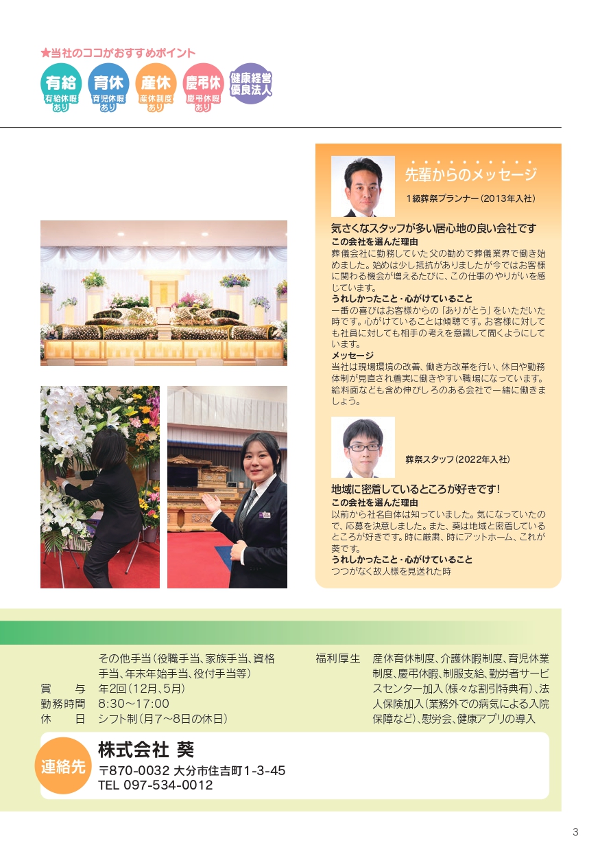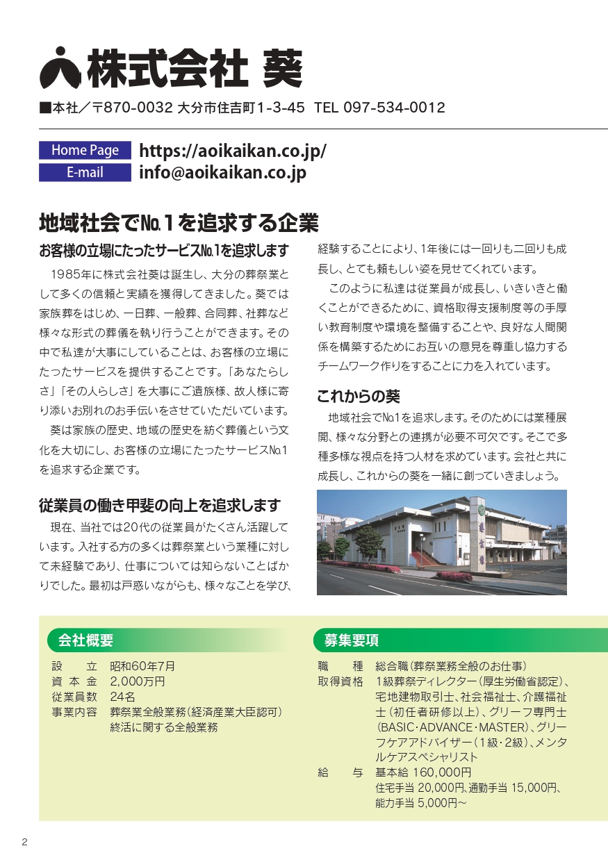 ※面接前に詳細な企業情報及び会社見学・工場見学等を希望される方は、まず求人ナビおおいたにご連絡ください。直接求人企業に電話しても構いません。