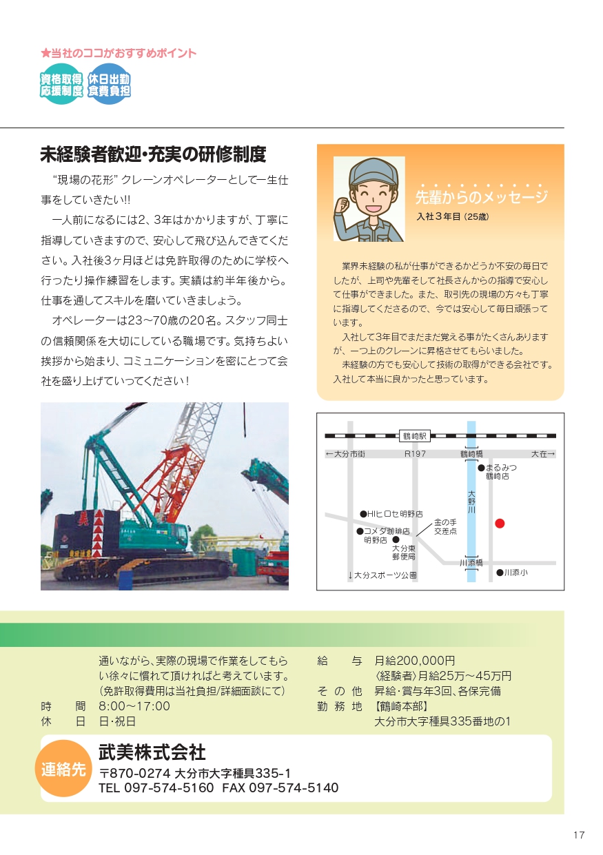 武美株式会社 2026 3/03 求人情報2027年新卒採用正社員(新卒採用) お問い合わせはこちら ※面接前に詳細な企業情報及び会社見学・工場見学等を希望される方は、まず求人ナビおおいたにご連絡ください。直接求人企業に電話しても構いません。 求人情報 2027年新卒採用正社員(新卒採用) 株式会社光建エンジニアリング 鶴崎海陸運輸株式会社