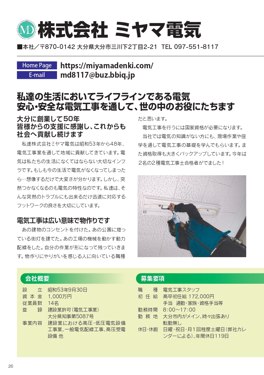 株式会社ミヤマ電気 2026 3/03 求人情報2027年新卒採用正社員(新卒採用) お問い合わせはこちら ※面接前に詳細な企業情報及び会社見学・工場見学等を希望される方は、まず求人ナビおおいたにご連絡ください。直接求人企業に電話しても構いません。 求人情報 2027年新卒採用正社員(新卒採用) 豊和銀行 株式会社めいじん
